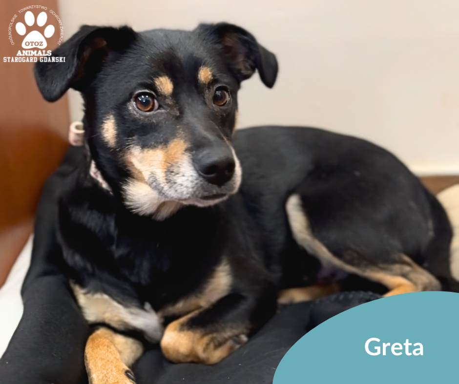 Greta to średniej wielkości psia dziewczyna w wieku około 4–5 lat. Na początku bywa trochę wycofana, ale wystarczy chwila spokoju i czułości, by sama zrobiła krok w stronę człowieka. Szybko otwiera się na kontakt i pokazują swoją łagodną, delikatną naturę.