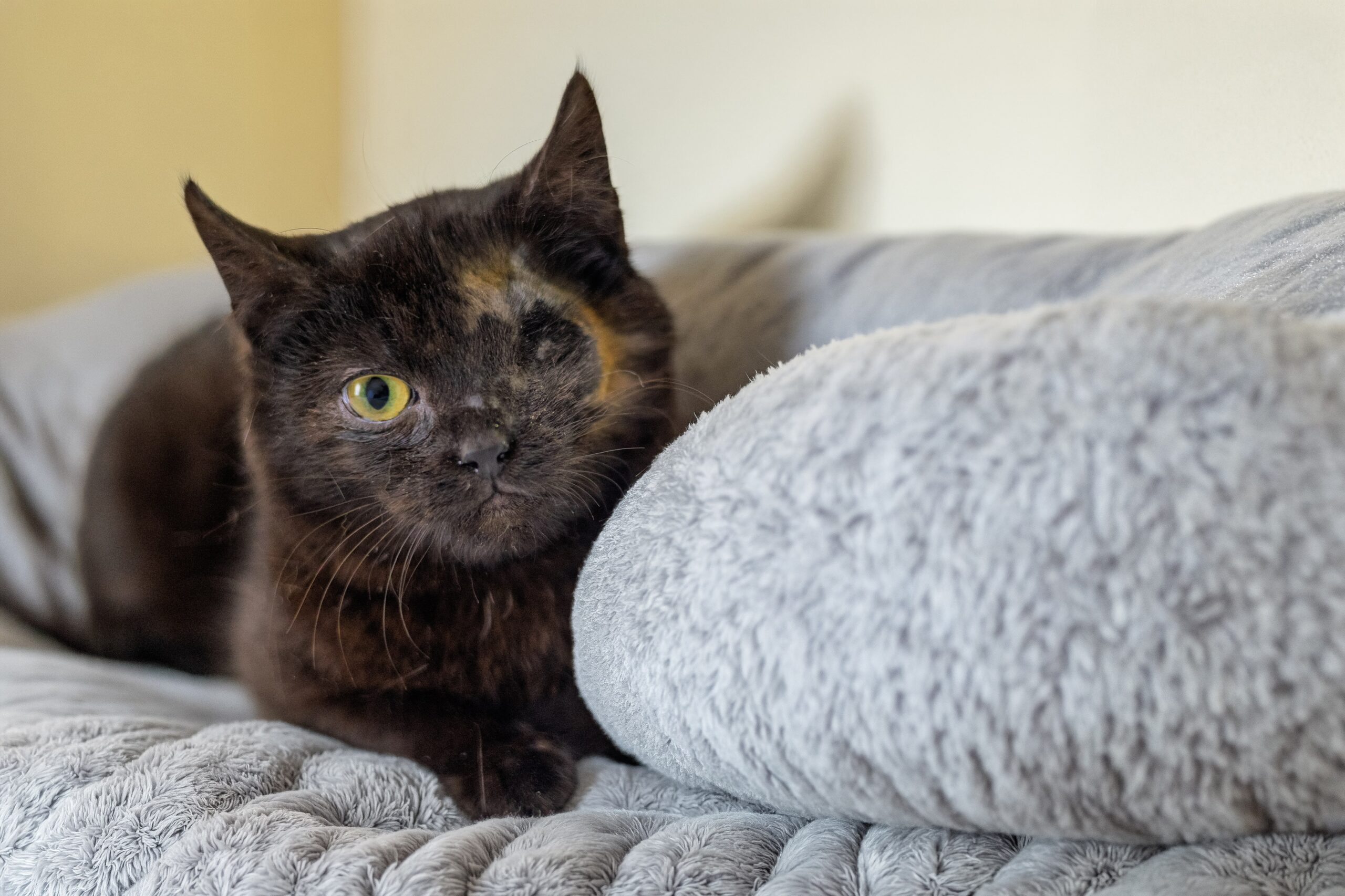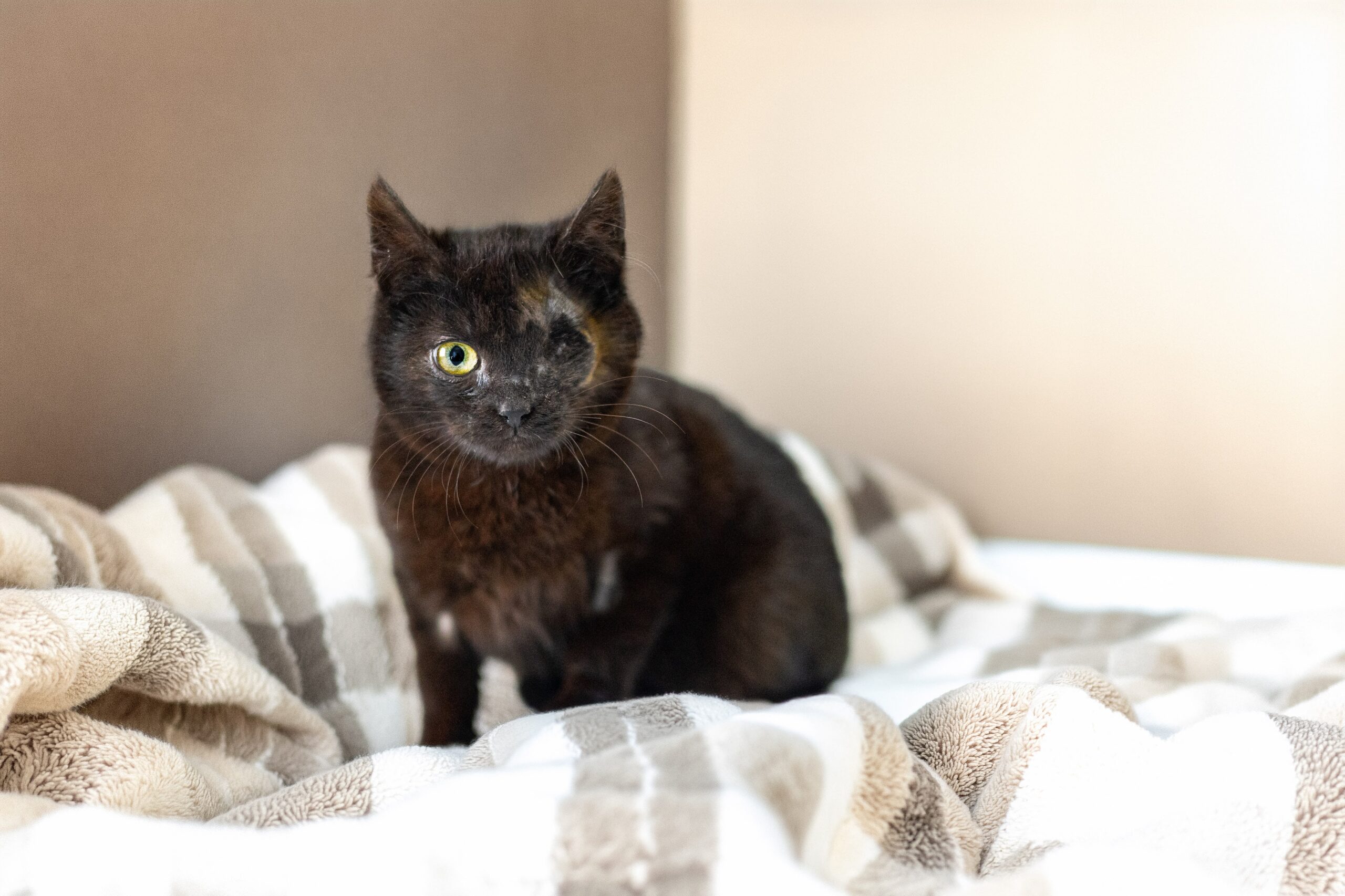 Pilotka jak trafiła była chora na koci katar. Niestety w wyniku choroby nie udało się uratować jednego oczka, które musiało być amputowane.