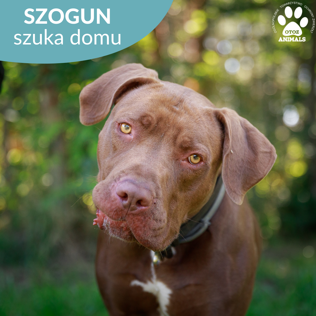 Szogun ma około 3 lat. To bardzo energiczny pies. Nie wystarczą mu krótkie spacery lub przebywanie tylko w ogrodzie – zdecydowanie potrzebuje dużej dawki ruchu. Zdarza mu się mocno pociągnąć za smycz – wymaga to odpowiedniego treningu. Najlepiej, gdy trafi do cierpliwej, konsekwentnej osoby, która jest otwarta również na pracę z behawiorystą.